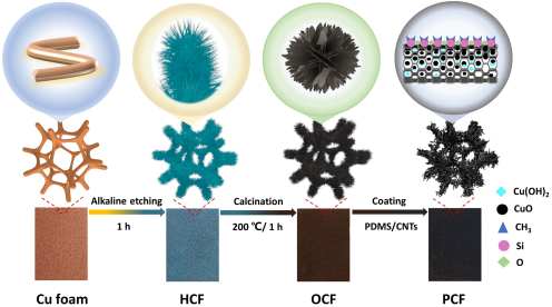 基于以上现状,公司英国365集团官网屈孟男教授研究团队将光热材料与超浸润概念相结合,以价格低廉的超疏水泡沫铜为基底,通过对其进行超亲水改性,巧妙构建了一种非接触式的具有保温空腔的Janus太阳能界面蒸发器。