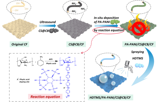 图1.超疏水导电HPCF复合材料的制备过程示意图。