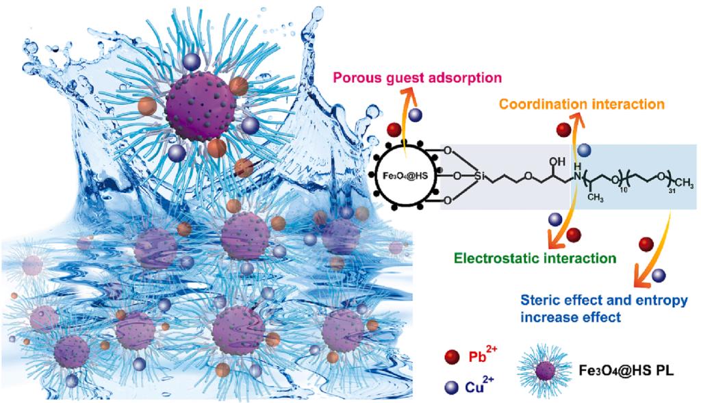图16 文章TOC图,Fe3O4@HS-PL对水中重金属离子Cu(II)和Pb(II)的吸附位点