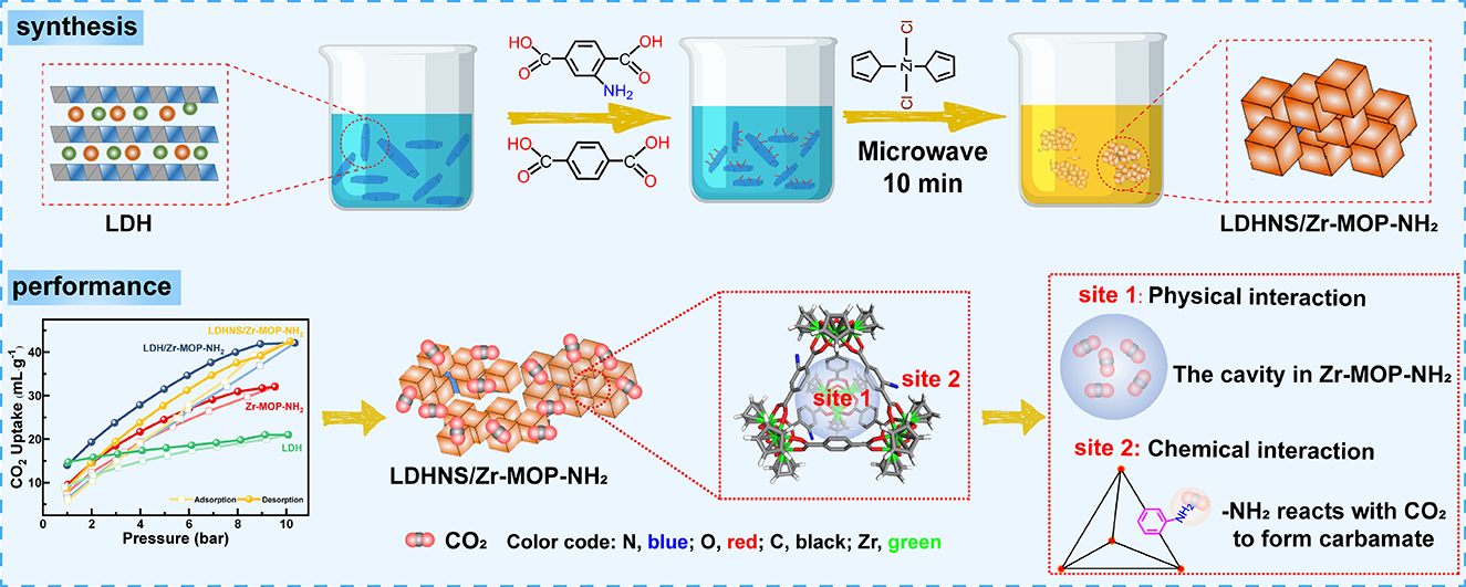 图12 文章TOC图,LDHNS/Zr-MOP-NH2的制备及其对CO2的吸附位点