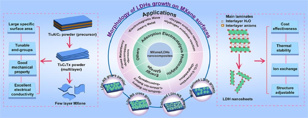 (7)成果七:Applied Materials Today:The new emerging MXene/LDHs nanocomposites: A critical review of synthesis strategies, morphological regulation, and application prospects