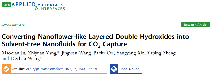 (3)成果三:ACS Applied Materials & Interfaces:Nanoflower-like Layered Double Hydroxides into Solvent-Free Nanofluids for CO2Capture
