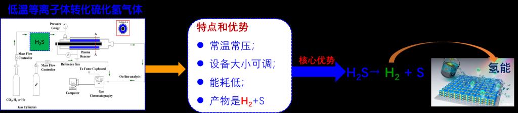 煤化工、石油化工行业产生的硫化氢及有机污染气体的控制与转化是大气污染防治的关键和重点。低温等离子体技术具有易于小型化,模块化,设备冷启动,随用随开,设备可根据需求调整大小等优势。该研究借助低温等离子体技术将硫化氢气体和有机污染废气在室温条件下直接转化为高附加值的氢能和低碳烷烃,是化工企业有机废气“变废为宝”的新途径。