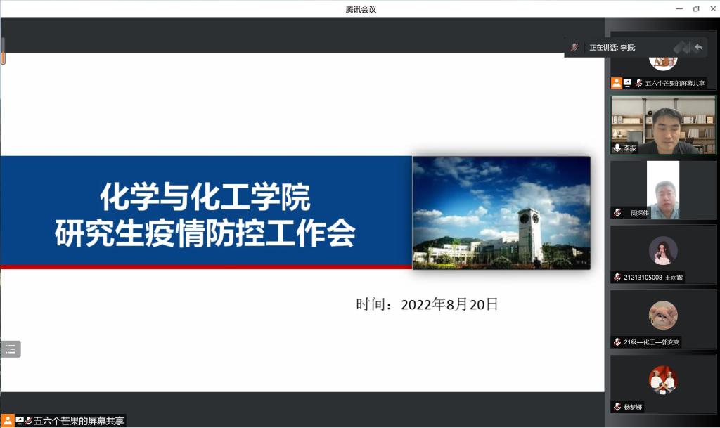 英国365集团官网全面加强研究生疫情防控教育管理,8月20日晚,召开了研究生疫情防控线上工作会议,副经理李振、团委书记周探伟、研究生辅导员以及公司全体研究生参加了本次会议,会议由副经理李振主持。