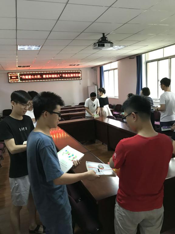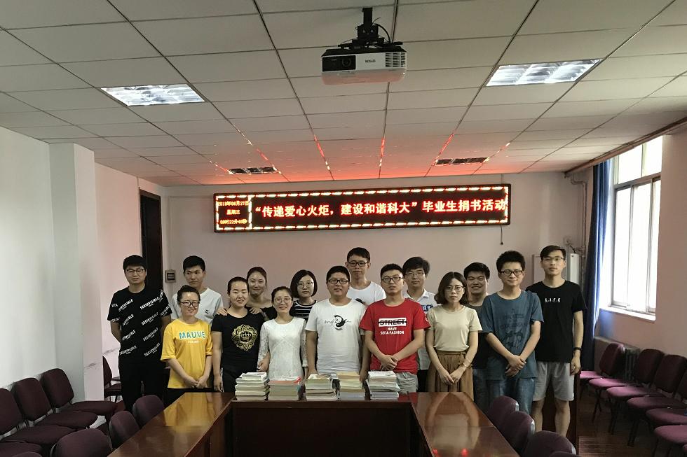 为了倡导积极、健康的毕业文化,6月27日,公司2018届研究生毕业班在雁塔校区举办了以“传递爱心火炬,建设和谐科大”为主题的毕业生赠书活动。广大毕业生积极参与,活动当天共收到捐赠书籍70余本,这批书籍将根据低年级研究生的需求分发到公司各个课题组。