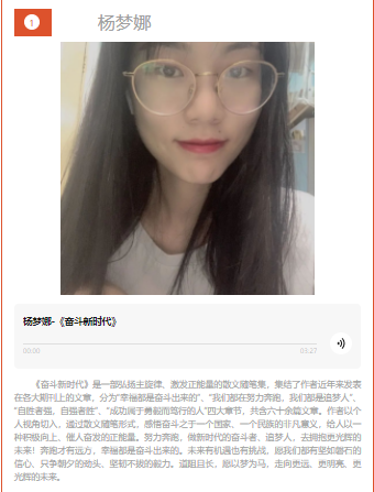 此次读书风采评比通过公众号为期一周的投票,根据票数高低评选出一等奖2名,二等奖3名,三等奖5名。此次活动到了研究生的热烈响应和积极参与,表达了对党和祖国的热爱之情和建功新时代的青春志向。