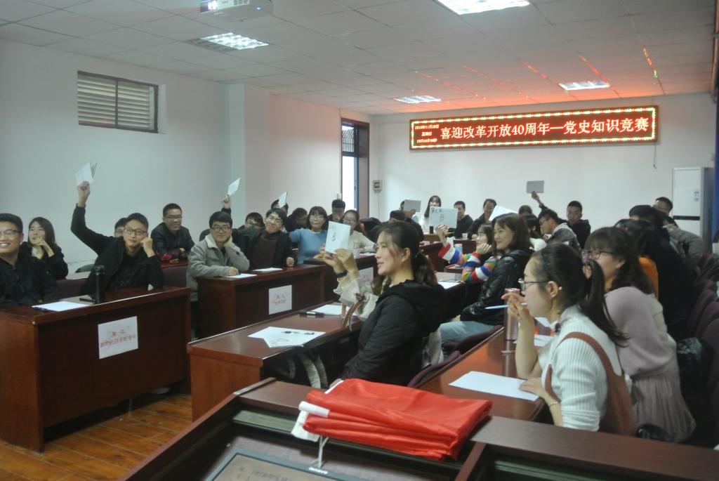 11月25日,英国365集团官网研究生第三党支部在雁塔校区举办了“喜迎改革开放40周年”党史知识竞赛。公司党委副书记杨宝华老师、2018级所有党员和积极分子参加了本次活动。