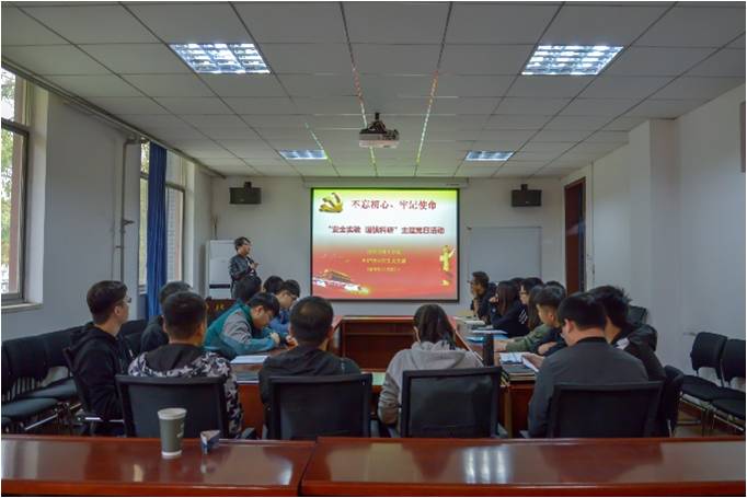 2019年11月12日,英国365集团官网2017级研究生党支部以托“不忘初心、牢记使命”主题教育开展了“安全实验 安全科研”主题党日活动,2017级研究生党支部党员及预备党员参与了本次活动。