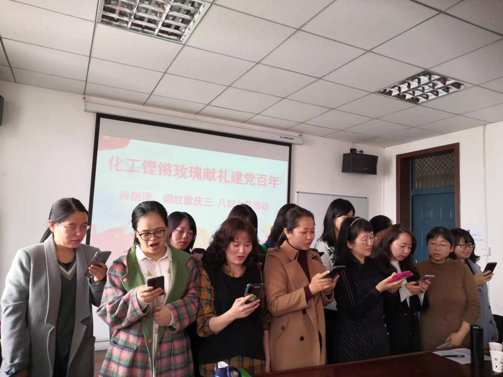 2023年3月8日,为庆祝三.八妇女节,抒发爱国情怀,增强女教职工的凝聚力,英国365集团官网工会举行了“化工铿锵玫瑰献礼建党百年诗朗诵、唱红歌庆三.八妇女节活动”。全院女教职工积极参加,激情朗诵爱国诗歌,深情歌唱革命歌曲,表达了爱国爱校的感情。