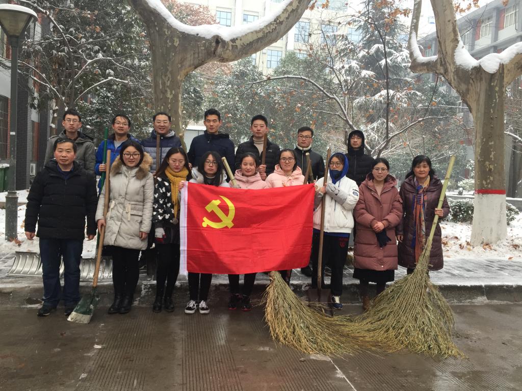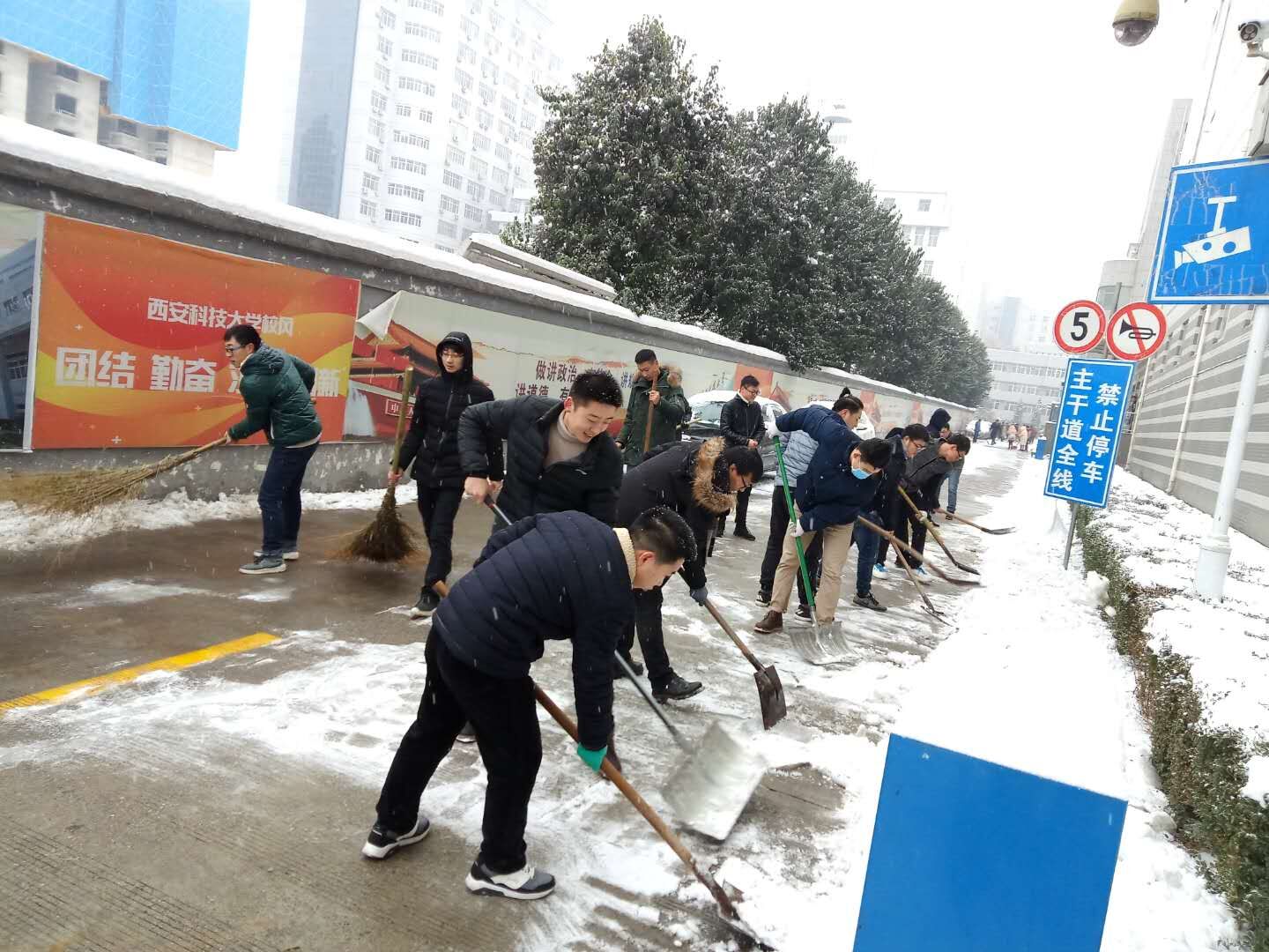 连日来的雨雪给公司教工员工出行带来了极大的不便和安全隐患。1月6日上午,英国365集团官网组织了寒冬献爱心—道路积雪清扫活动。公司党委副书记杨宝华、副经理蔡会武带领英国365集团官网二十余名研究生,对公司雁塔校区积雪进行了大面积清扫。不但方便了广大教师、员工的出行,也给广大研究生上了一堂生动的道德教育实践课。