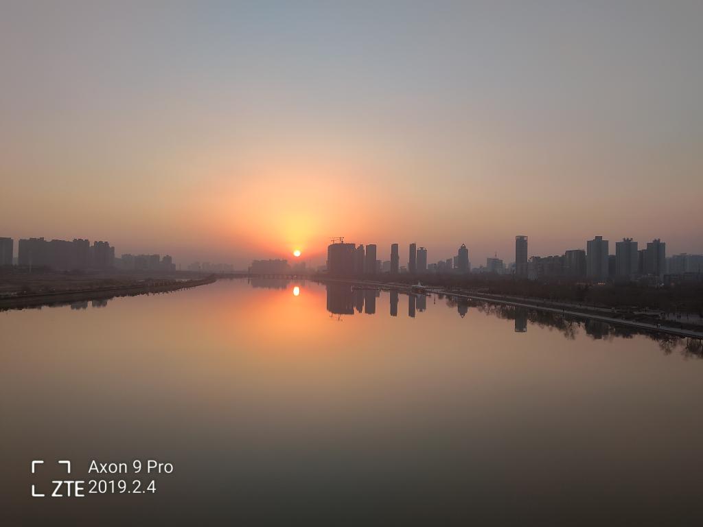 (于春侠--落日余晖倒映在平静的水面,虽已近黄昏,但只有”夕阳无限好“的美妙。)