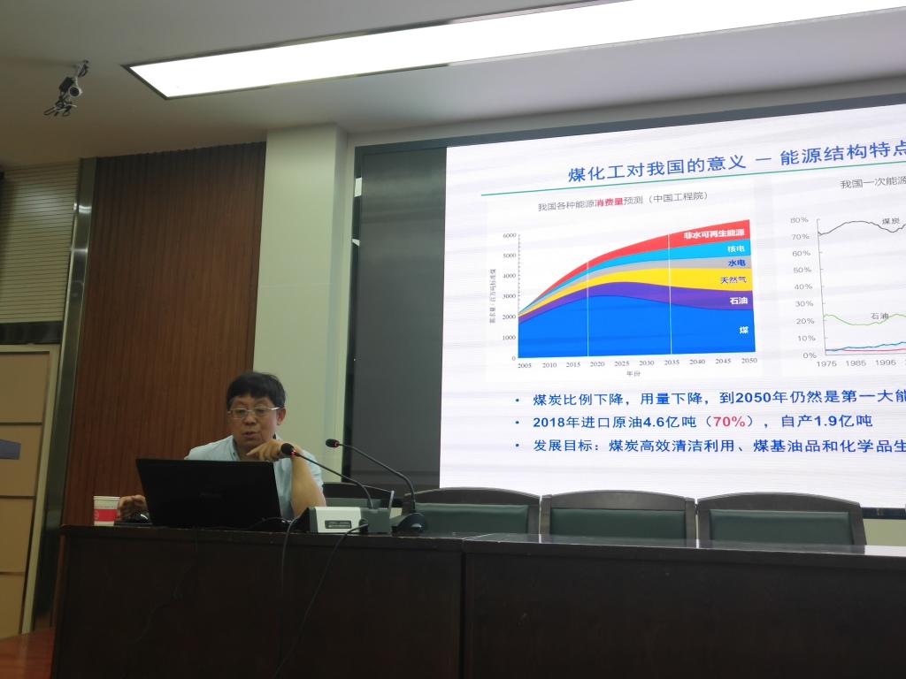 报告会上,刘振宇从国家安全角度分析了发展煤化工对我国可持续发展的重大意义,详述了煤热解科学的挑战及其研究进展。他阐述了煤清洁高效转化技术发展的关键是认识化学和化学反应工程的基本规律,并对煤的键合结构模型、煤热解的自由基反应规律、煤热解稳定自由基与活性自由基的行为及其与煤阶的关系进行了深刻分析,提出自由基反应是重质有机资源转化的核心之一,对其认识仅是“冰山一角”,介绍了在重质有机物热解、油页岩热解、生物质热解、煤溶剂萃取过程等一系列研究中,刘教授团队就自由基的相关理论、方法及应用取得了诸多成果及突破,分享与大家。最后,针对煤化工行业的广大青年学者,他指出煤和煤转化科学有很多关键、内在的规律尚未被认识;科研的精髓是提出问题、针对问题提出假说/猜想(不光数学和物理有猜想);我们可以从物质传递和化学反应的耦合角度设计实验,判断所提出的猜想;在我国煤化工研究中,广大科技者大有可为。