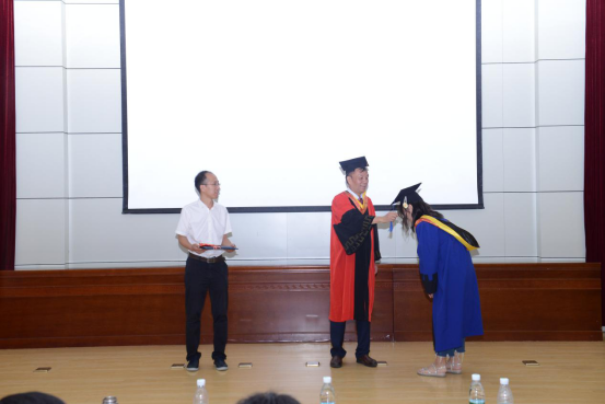 在随后举行的学位授予仪式上,经理杜美利为毕业生拨穗正冠,党委书记张向荣为其颁发毕业证和学位证。42名毕业生们穿上学位服,带着全院教师的期望,踏上了全新的征程。