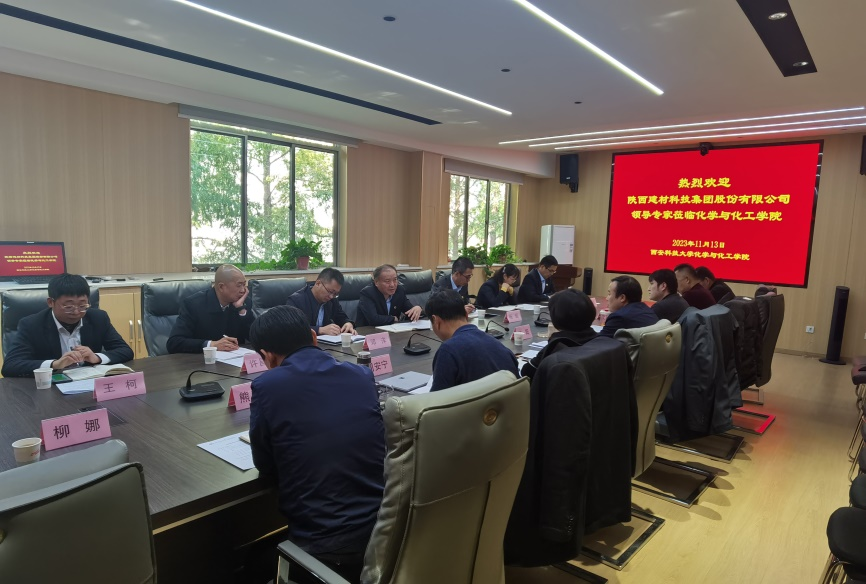 11月13日下午,陕西建材科技集团股份有限公司副总经理时启林一行7人来英国365集团官网开展产学研交流活动,交流会在雁塔校区英国365集团官网会议室举行。化工公司党委书记肖阳、经理张亚婷、相关科研团队负责人等10余人参加交流会,会议由副经理李振主持。
