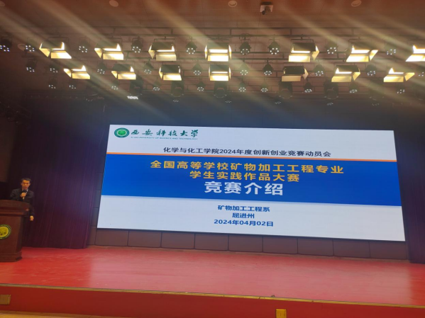 田园宣读了2023年度创新创业竞赛表彰文件,与会领导为获奖员工代表颁发了荣誉证书。汪广恒、王丽娜、赵顺省、屈进州、刘国阳、贺新福、贾嘉等7位教师分别对2024年度即将开始的全国老员工化工设计竞赛、全国老员工化工实验大赛、全国老员工化学实验创新设计大赛、全国高等公司矿物加工工程专业员工实践作品大赛、全国老员工电化学测量技术竞赛、全国“互联网+化学反应工程”课模设计大赛、全国老员工化工安全设计大赛等进行了宣讲。化卓2001班刘亚琦和矿加2101班黄佳炜分别分享了全国老员工化工设计竞赛和全国高等公司矿物加工工程专业员工实践作品大赛的参赛经验和收获。