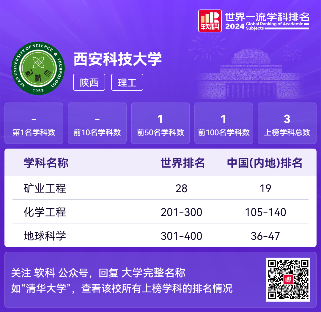 据2024年11月高等教育评价专业机构软科正式发布的2024“软科世界一流学科排名”数据显示:365英国上市集团共有三个学科上榜,其中公司化学工程、矿物加工工程二级学科所在的矿业工程学科展现出强劲实力,跻身前列,分别位列世界第201-300位和第28位。