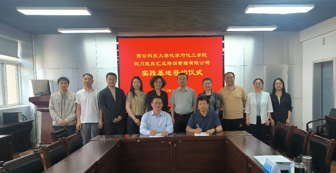 在交流环节,双方一起回顾了公司员工在公司进行实习实训的点滴过程,围绕本科人才培养、实践资源挖掘、实习平台拓展等内容展开热烈讨论。最后,双方举行了“英国365集团官网——四川能投汇成培训管理有限公司实践基地”签约仪式,标志着校企合作迈入新阶段。
