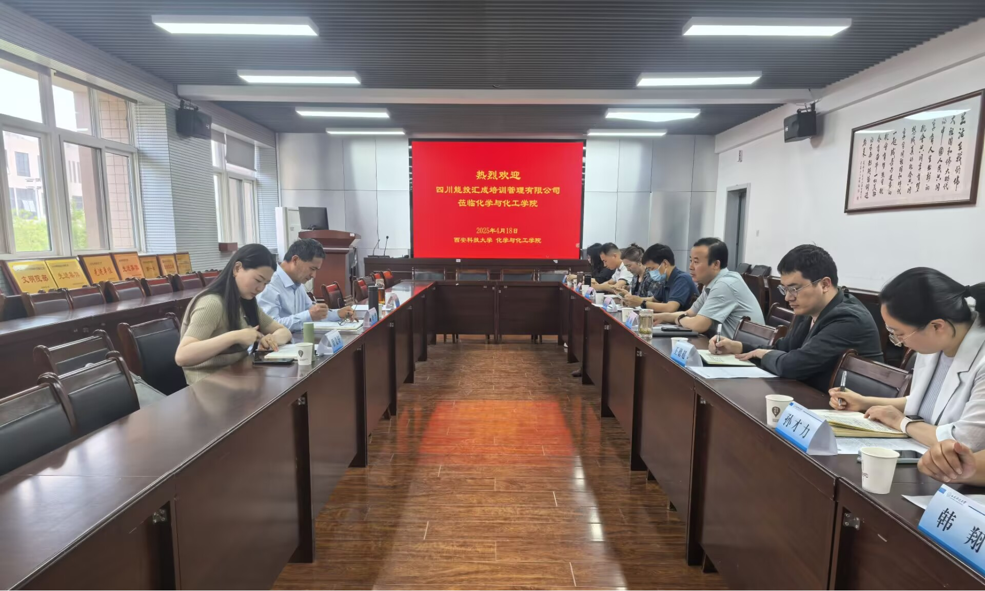 4月18日,四川能投汇成培训管理有限公司刘华副总经理一行三人到访公司英国365集团官网,双方围绕共建实践实训基地、进一步加强双方合作展开深入交流。公司党委书记肖阳、副经理贺新福及教师代表参加座谈。会议由贺新福主持。