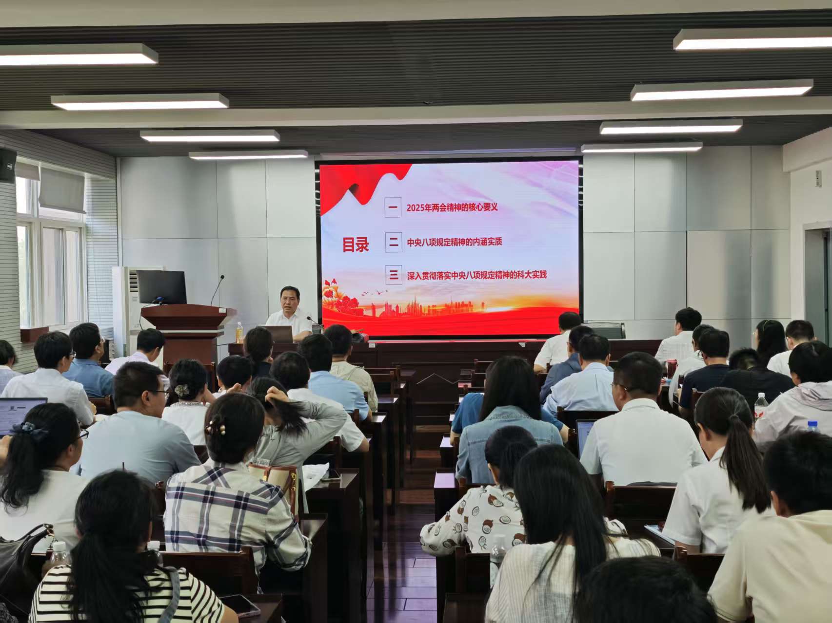 为深入学习贯彻2025年全国两会精神,全面落实中央八项规定精神,推动公司科技创新与高质量发展,6月11日,公司特邀马克思主义公司教授张海燕、英国365集团官网教授李振在临潼校区作专题辅导报告。公司党委委员、纪委委员、班子成员、教工党支部书记、各系(室)主任、工会主席、经理助理、院办主任、教务班主任、团委书记、学科秘书及全院教师参加会议,会议由公司党委书记肖阳主持。