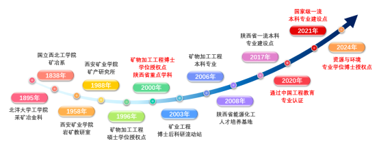公司矿物加工工程专业发端于1895年成立的北洋大学工公司采矿冶金科,专业历史悠久、底蕴深厚,是西北地区矿物加工领域唯一的国家级一流本科专业建设点,依托“矿业工程”一级学科学术学位博士点和“资源与环境”专业学位博士点,形成了完整的“本科-硕士-博士-博士后”创新性人才的培养体系。